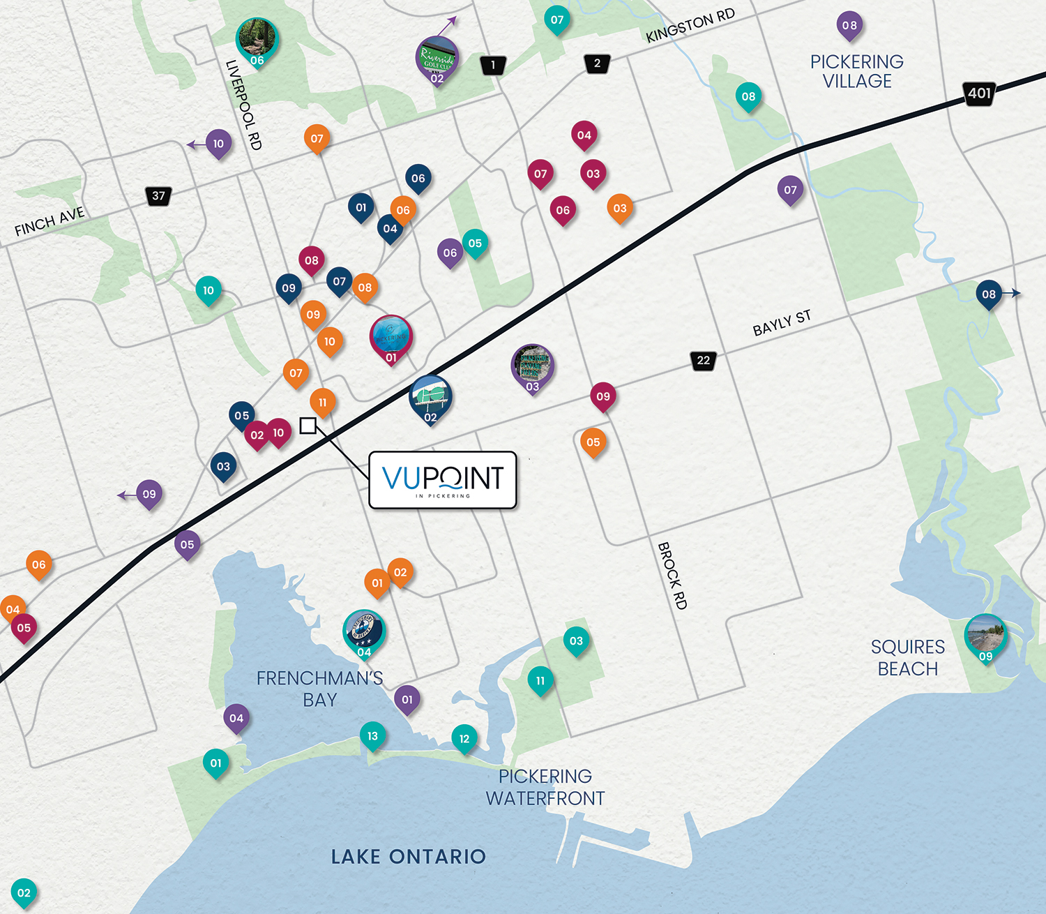 Experience the community that is forever changing the landscape of Pickering’s thriving urban centre with VuPoint Condos. This distinguished condominium community of three spectacular towers puts you atop the city’s greatest vantage point, offering envied panoramic vistas stretching kilometres in every direction. Revel in this evolving location.